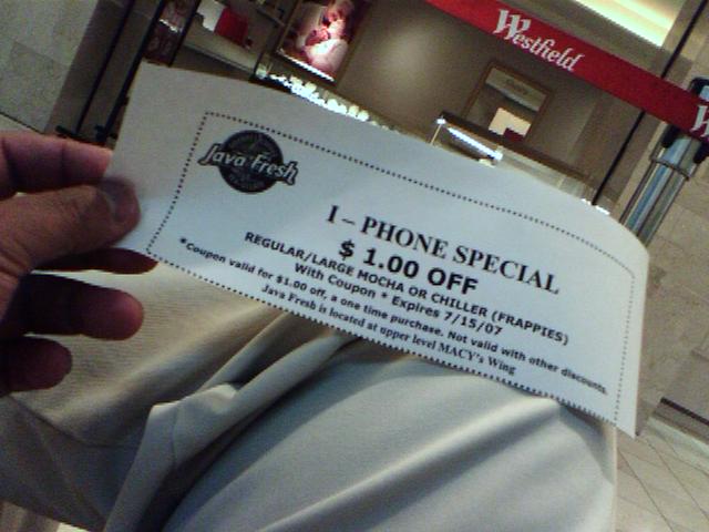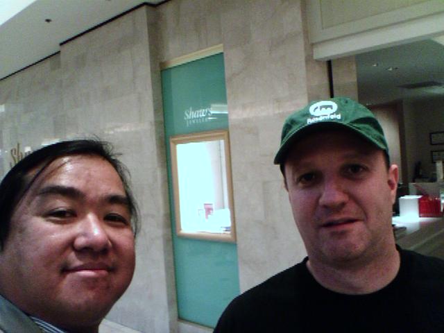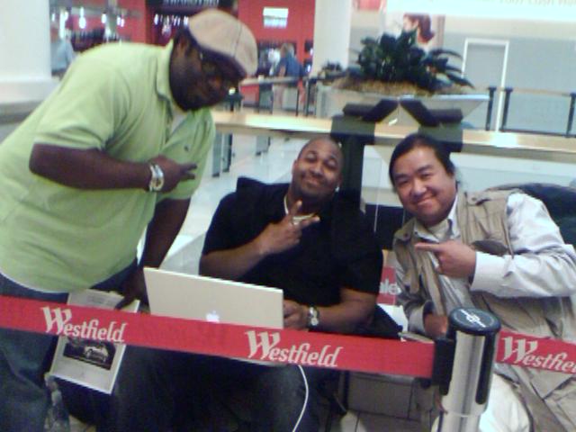 ![]() ![]() ![]() ![]() Thomas Vanderwal, the father of the term folksonomy, stopped by to say hi. He was running an errand to the mall and is not buying an iPhone right away. We had a great chat to catch up on our projects. He's travelling the world consulting on social media. An Apple staffer has been handing out bottled water and a lady from Java Fresh just gave out $1.00 off coupons. There's a steady stream of people asking what the line is for. 100 people in front of the Apple Store all facing a giant iPhone monolith. It's amazing that they can't figure it out. A lady just offered to take our picture. I'm pictured with Steve and Ed as we proudly represent the tech geek dads of Montgomery County. - mike lee - just about five hours to go here at montgomery mall |