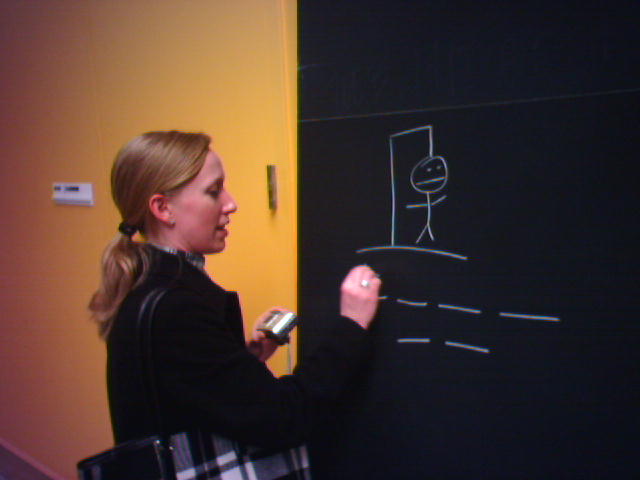 ![]() ![]() ![]() We got a guided tour of the relatively new Frank Gehry-designed Stata Center just before lunch. Amy is pictured here chaulking a hangman drawing on the public blackboards in the main concourse of the building. Then we met up with Professor Ariely for some stimulating conversation at Legal Seafoods on Main Street. - mike lee - cambridge, ma |
