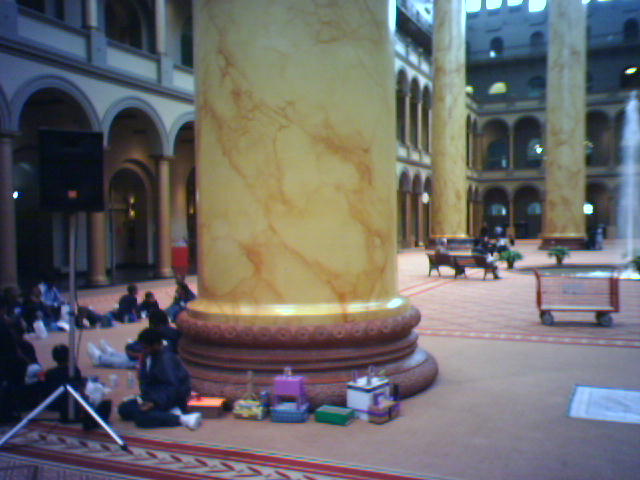 ![]() ![]() ![]() ![]() ![]() Amy and I grabbed sandwiches for lunch today from the cafe at the Great Hall of the National Building Museum. I made a mobile mosaic of this impressive space a couple years ago. As is typical on weekdays when school is in session, there were groups of kids on field trips gathered in clumps on the expansive carpeted floor. The laughter of children enhances the soothing sound of the water fountain in the center of the hall. While it's free for everyone to access the building today (with an optional $5 donation), in a week, it will cost $795 each for those walking this same carpet to attend the "Commander 'n Chief's" Inaugural Ball--one of 17 around the city. The Big W will likely step between two of the massive italian renniassance columns (pics 1-4), across the tiled mosaic of the 1901 presidential seal (pic 5), and into a cheering crowd who have paid handsomely in many ways for the privledge. I would like to one day see what a privately-funded $40 million-dollar party like this looks like, but even with televised coverage, I think I'll be off enjoying the sweet sound of a child laughing. - mike lee - washington, dc |
