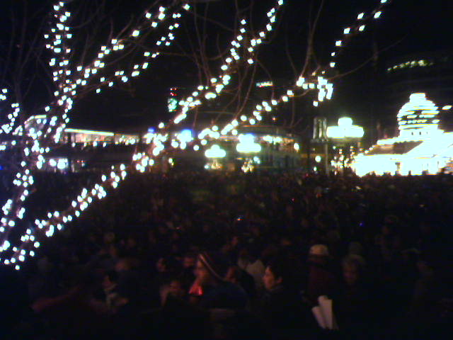 The Baltimore New Year's Eve Spectacular is in progress. Mayor O'Malley is about to do the countdown, but he first recognizes the tsunami disaster and our soldiers overseas. It's shoulder-to-shoulder people down here. - mike lee - |