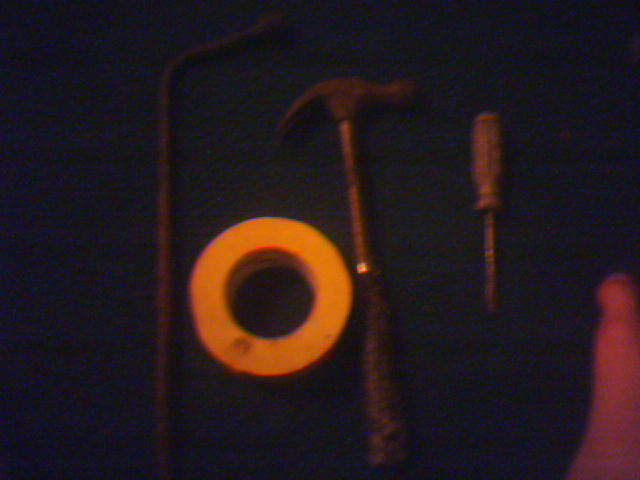 Crow bar duck tape hammer and screw driver --scottydesa |